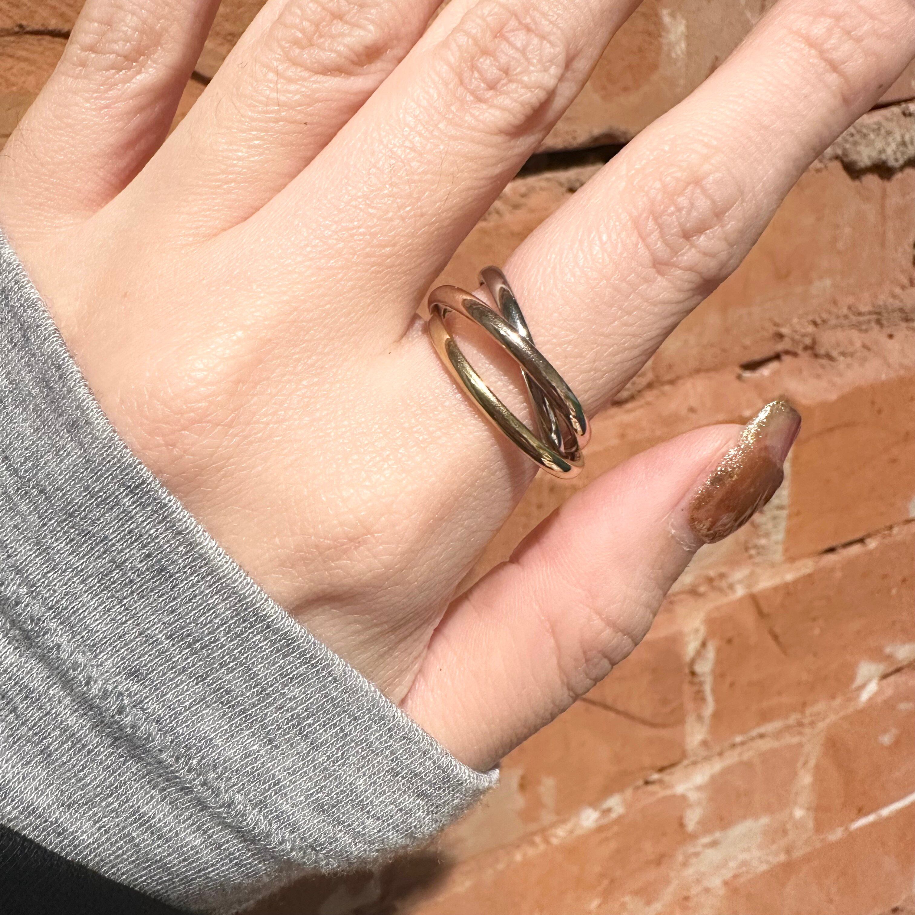 イエローゴールドxシルバーxピンクゴールドの3連リング