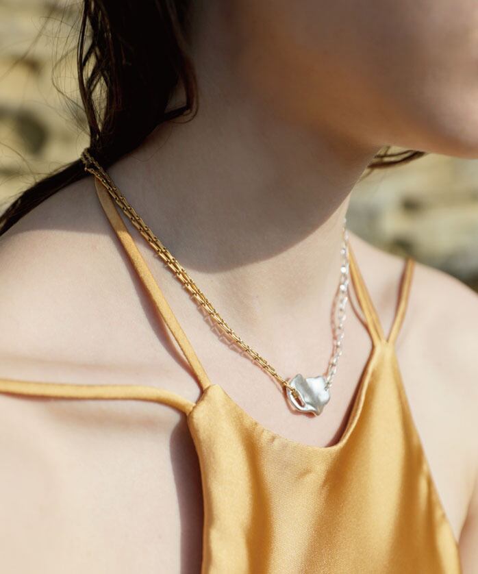 ニュアンスデザインがおしゃれなネックレス。チェーンの繋ぎ方によって色々な着用の仕方ができます。