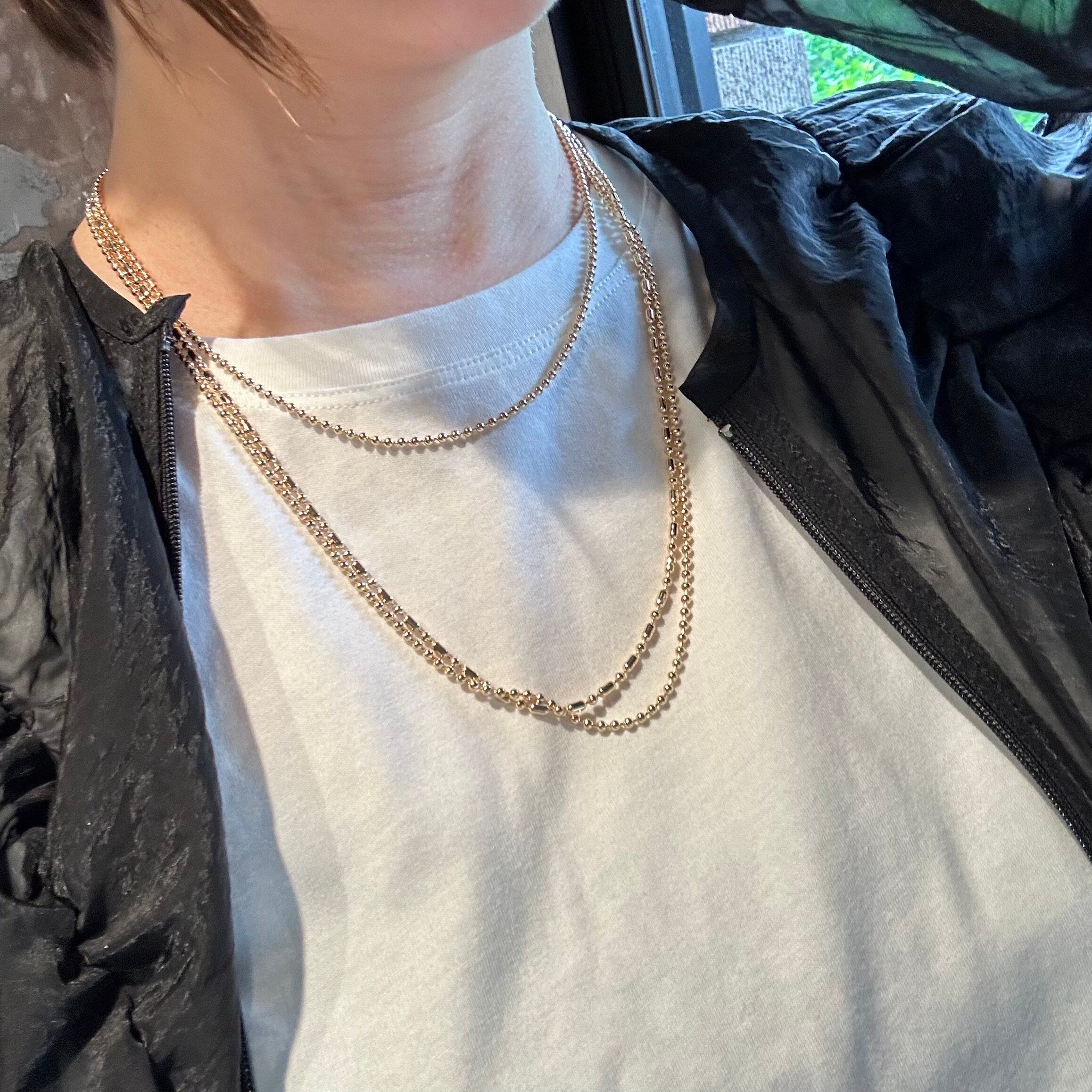 1本の長いロングネックレスをお好きなようにアレンジして着用できる便利アイテム。