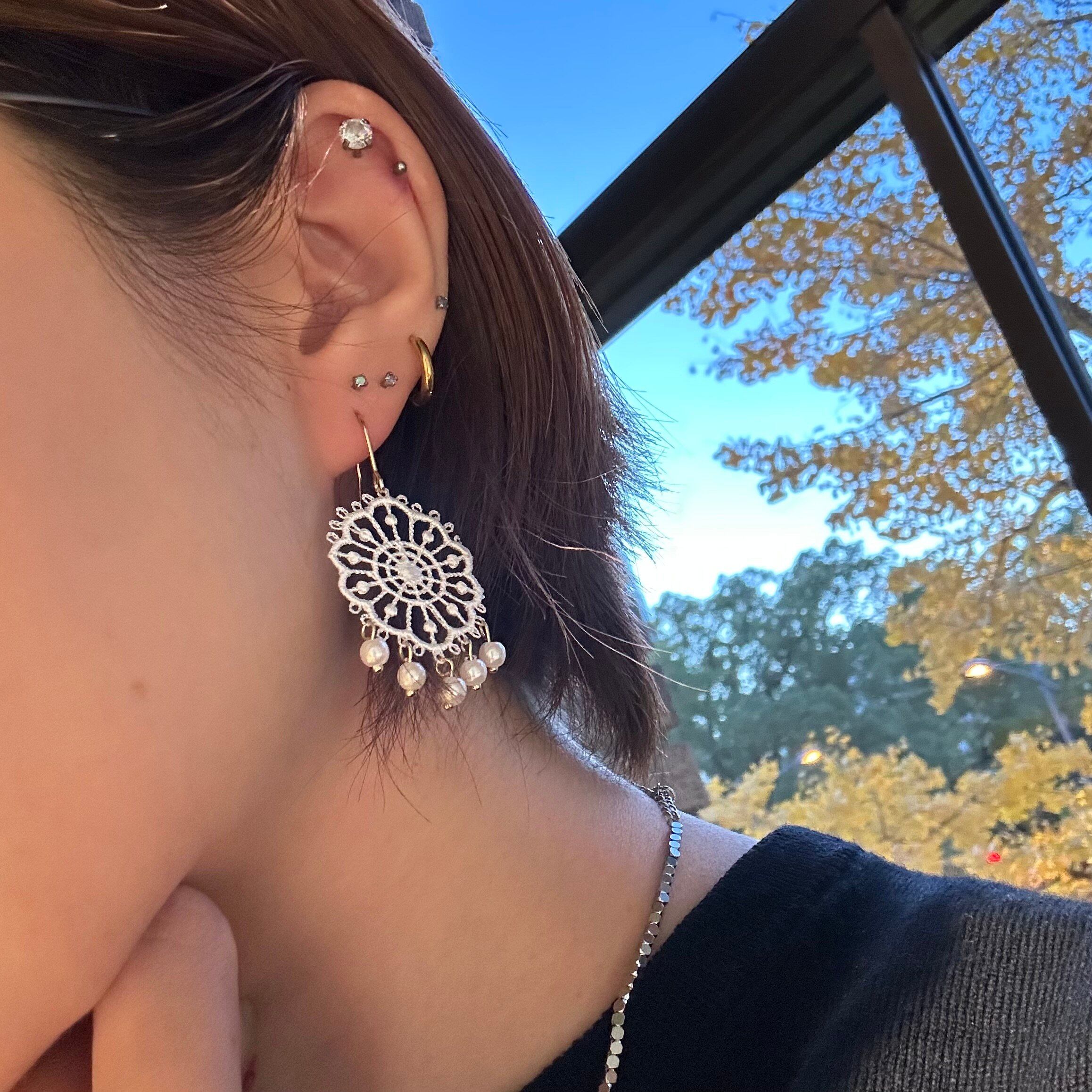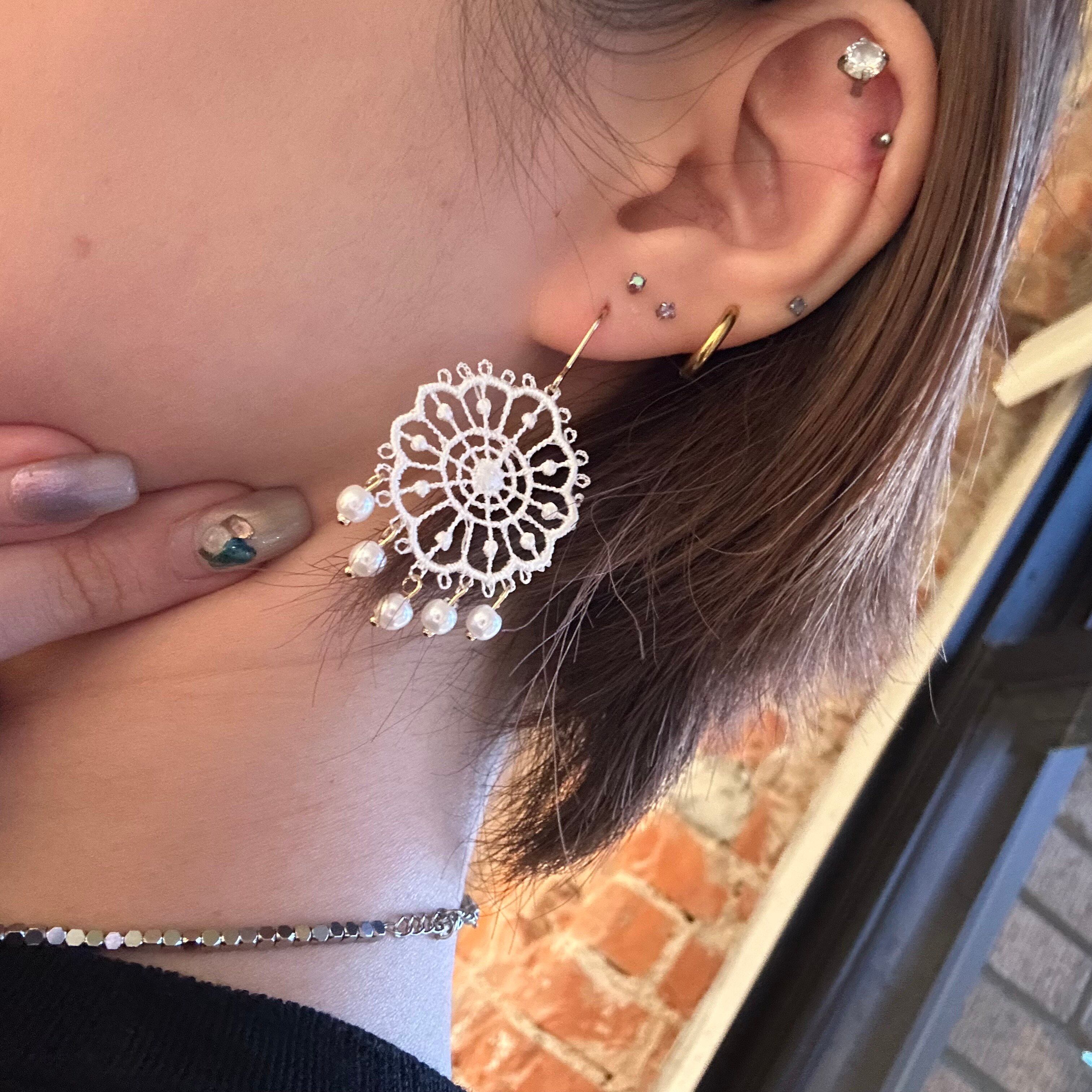 素材:レース、プラスチックパール、真鍮ポスト