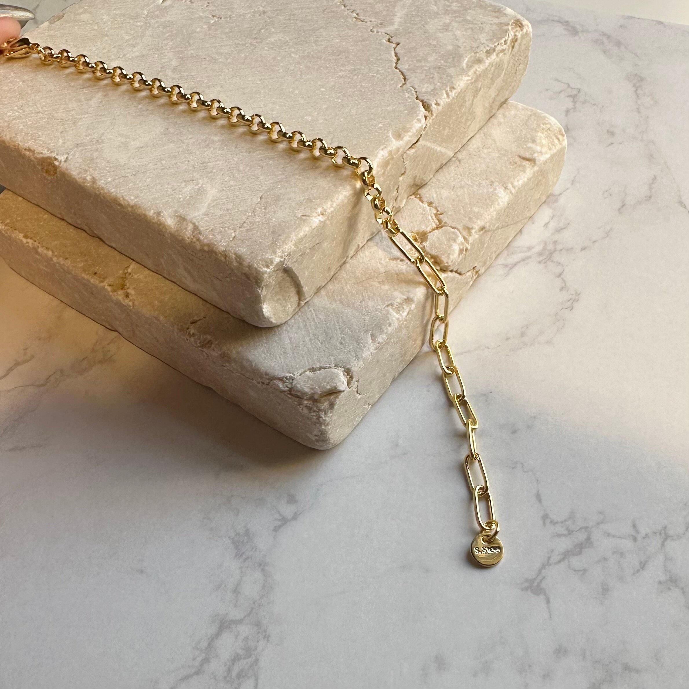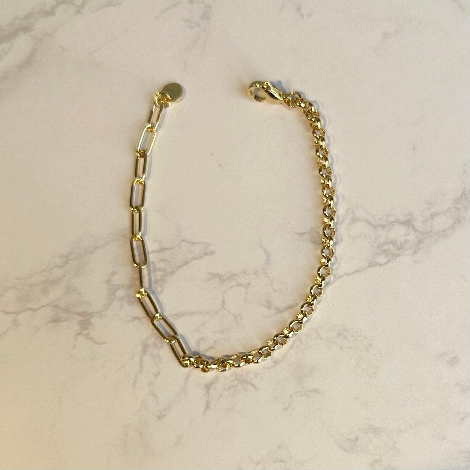種類の異なる2種類のチェーンを組み合わせたブレスレット。