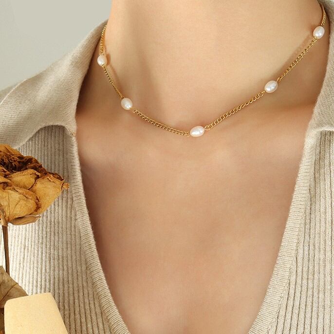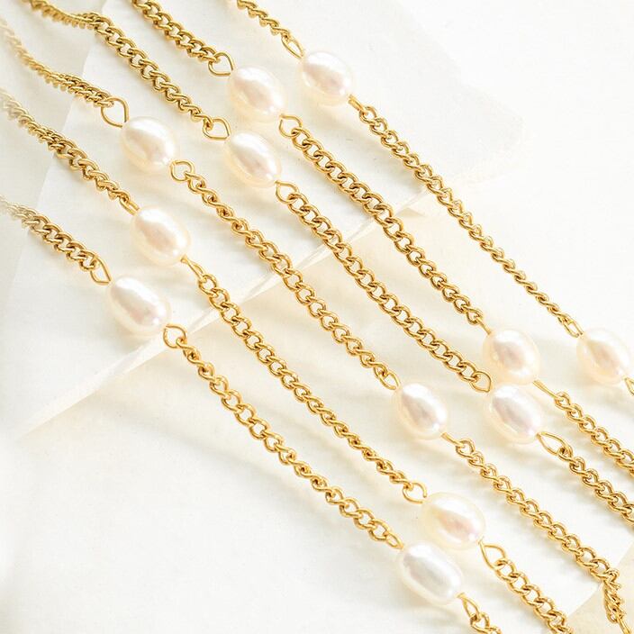 淡水パールとチェーンを交互につないだネックレス。