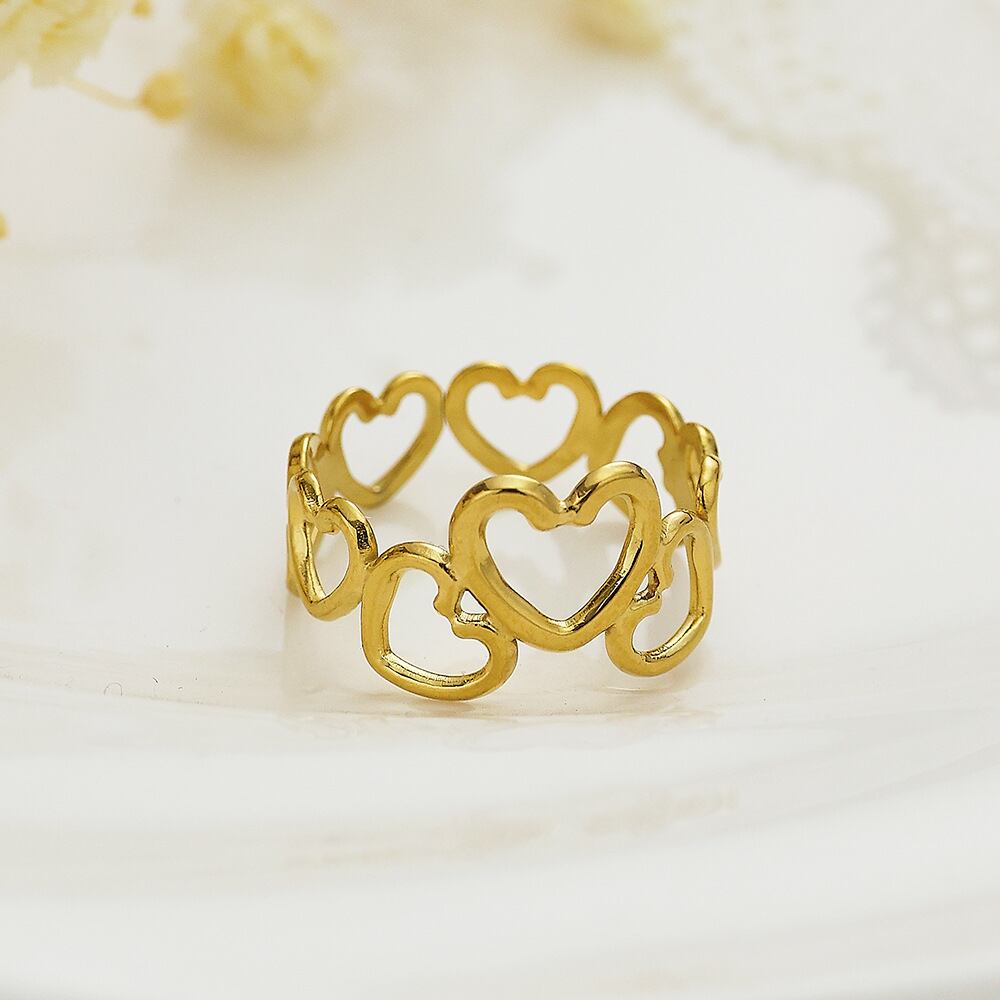 heartが連なったデザインのリング。