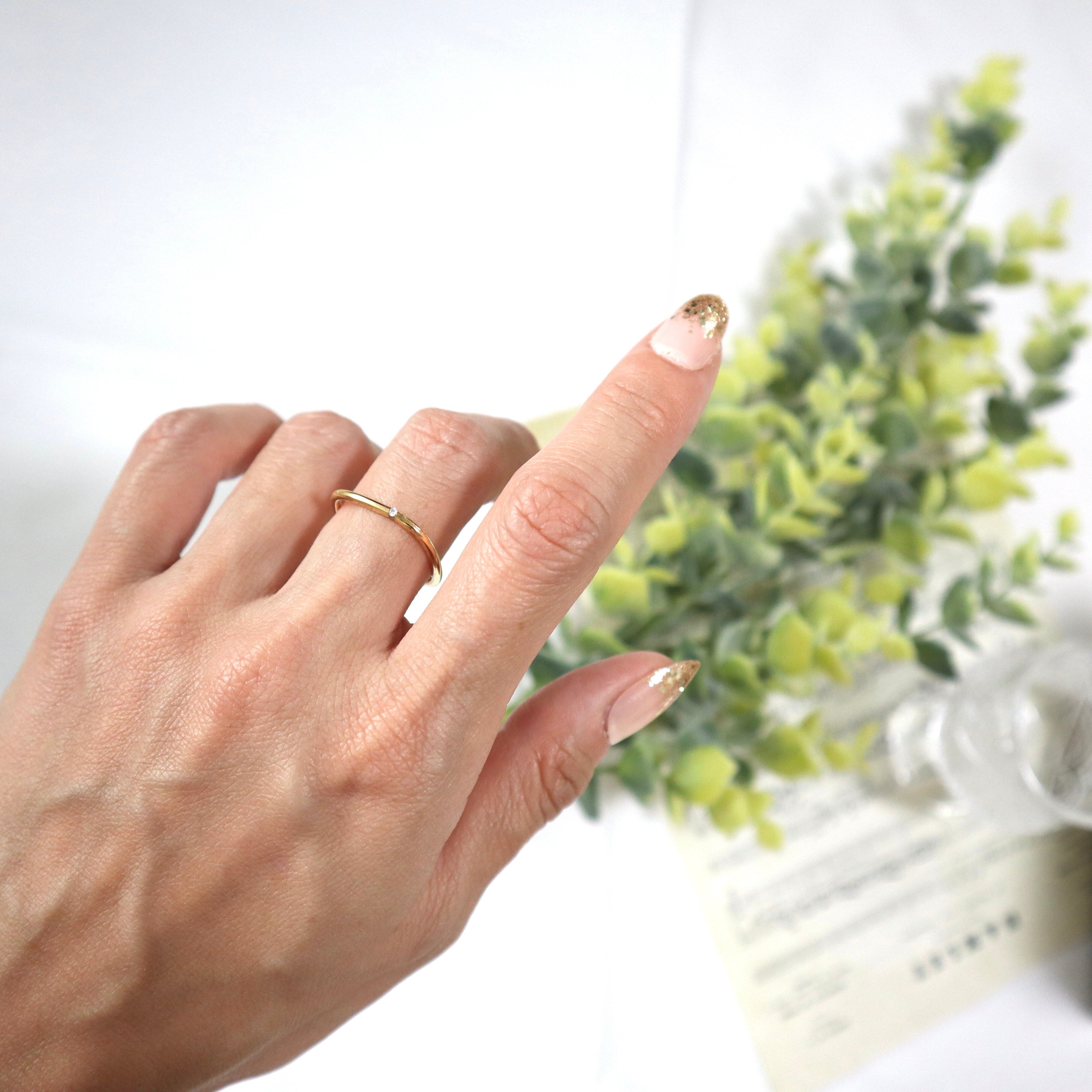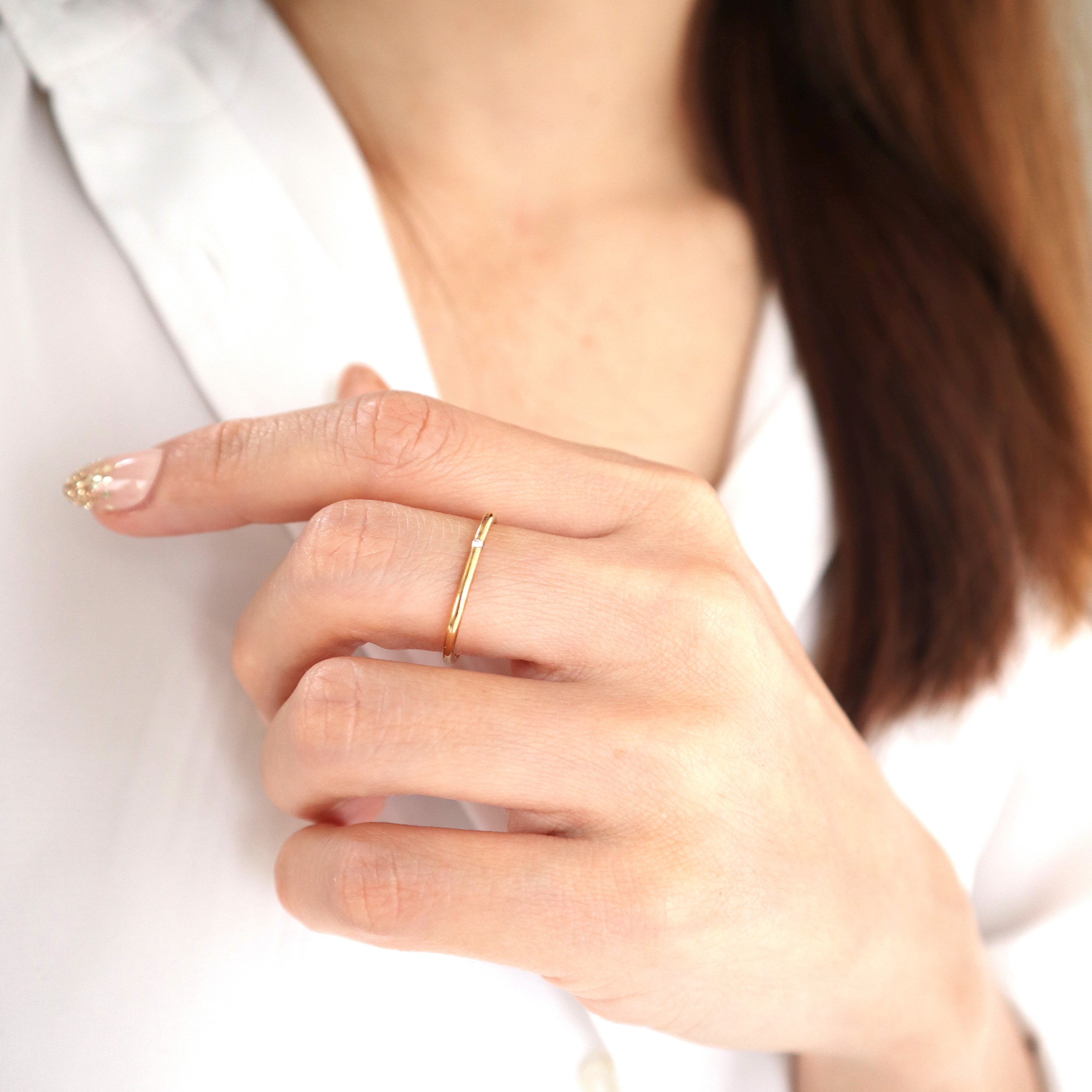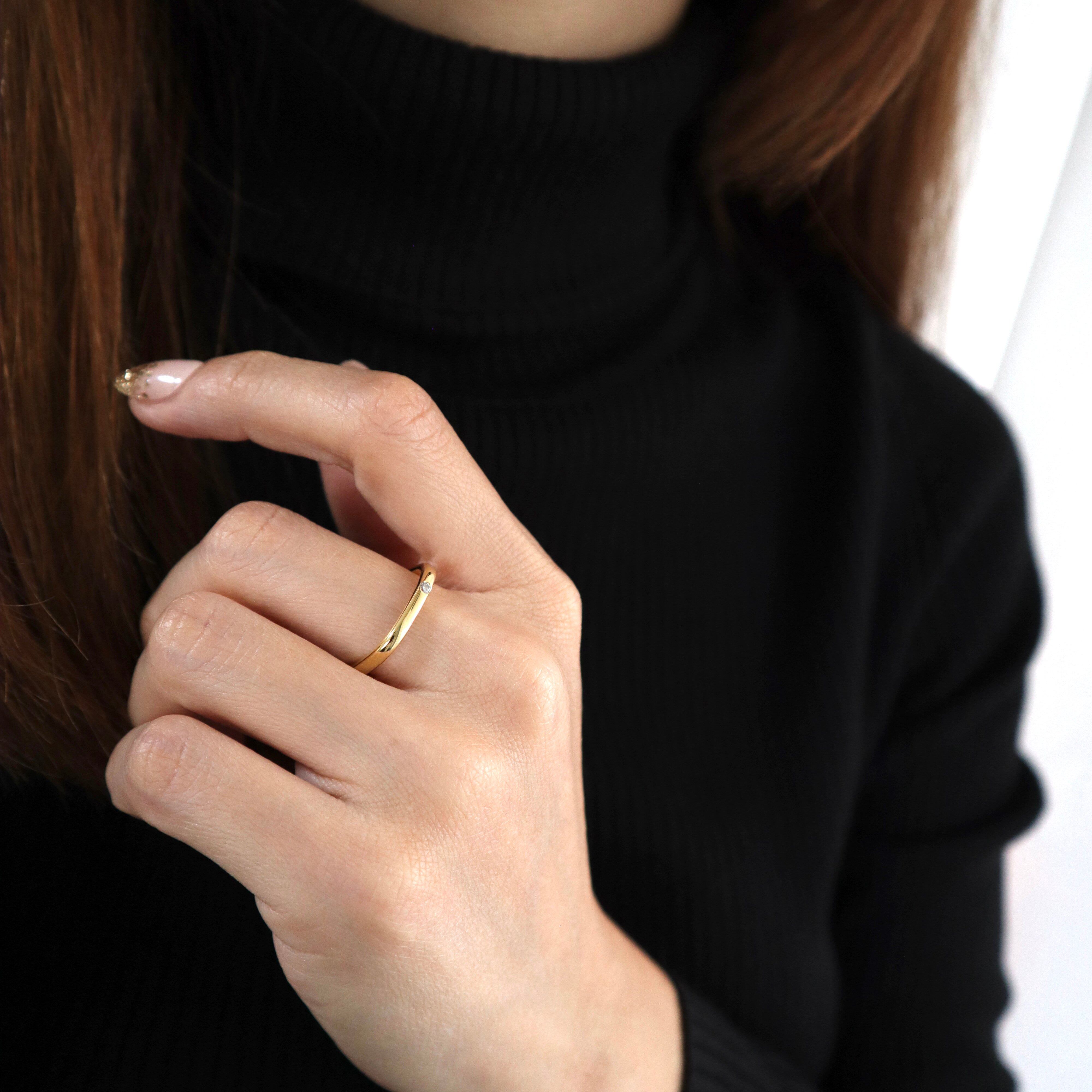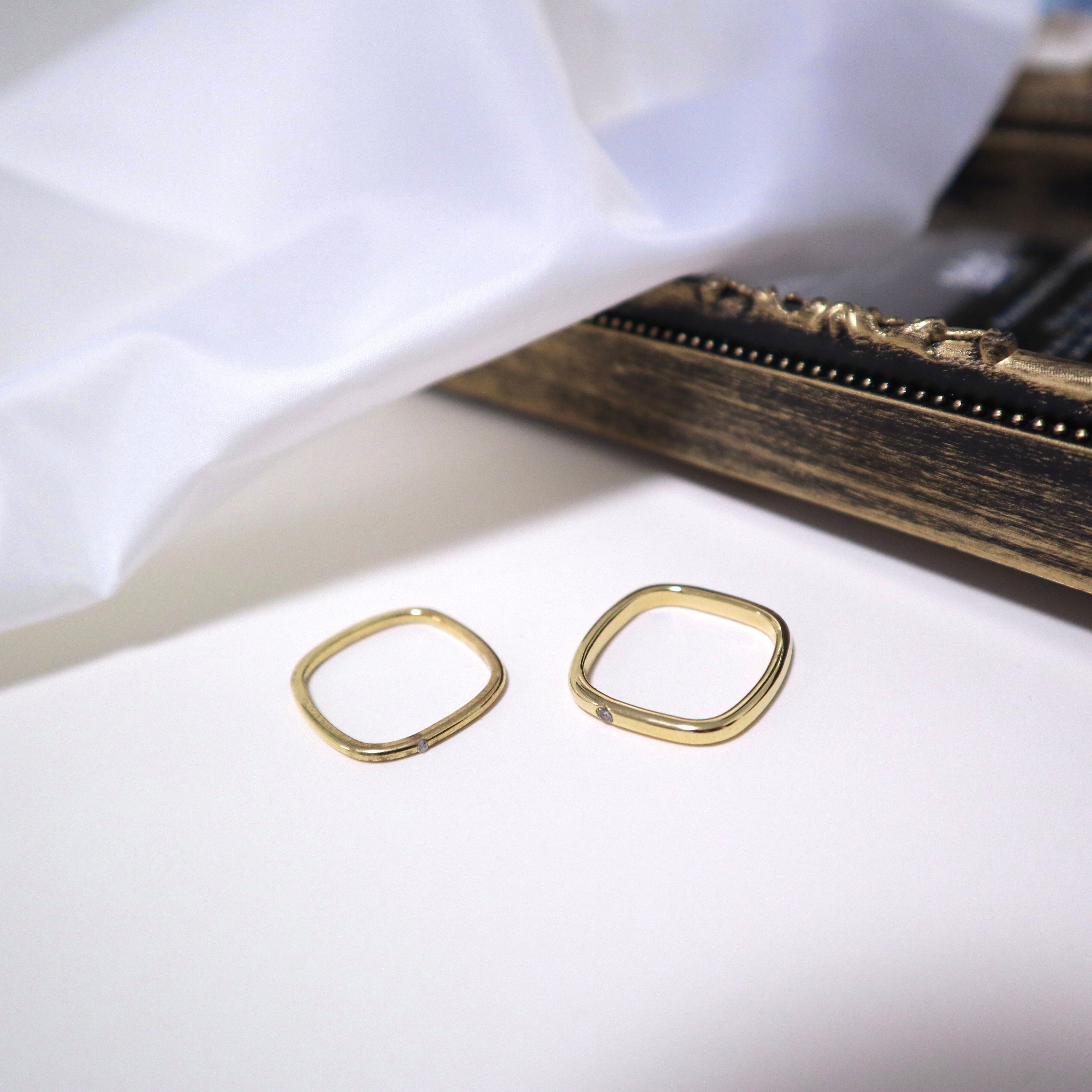 円形のリングに比べて、シンプルながらもアクセントになります。