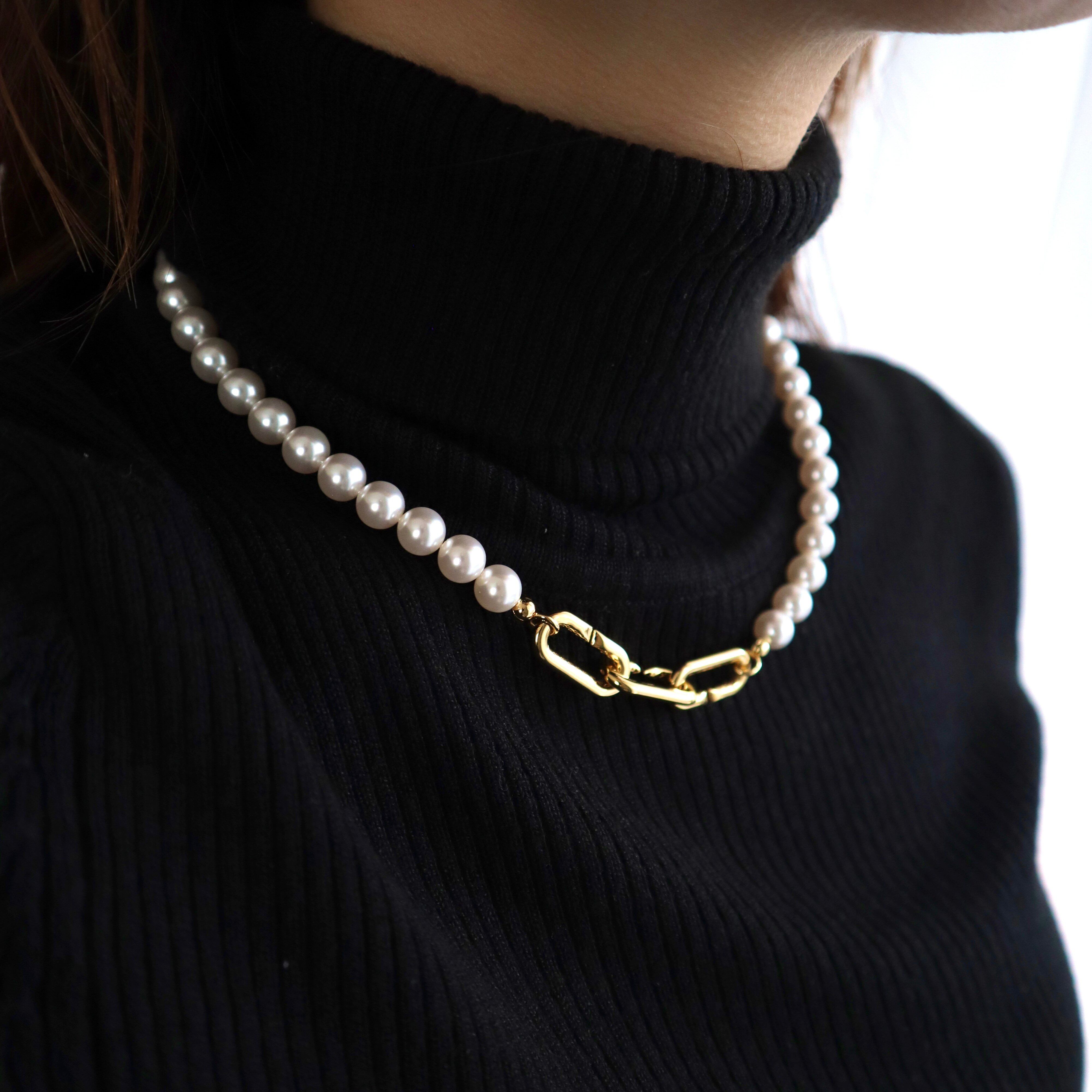 留め具を後ろにすればシンプルなパールネックレスになり、冠婚葬祭などのフォーマルにも活用できます◎
