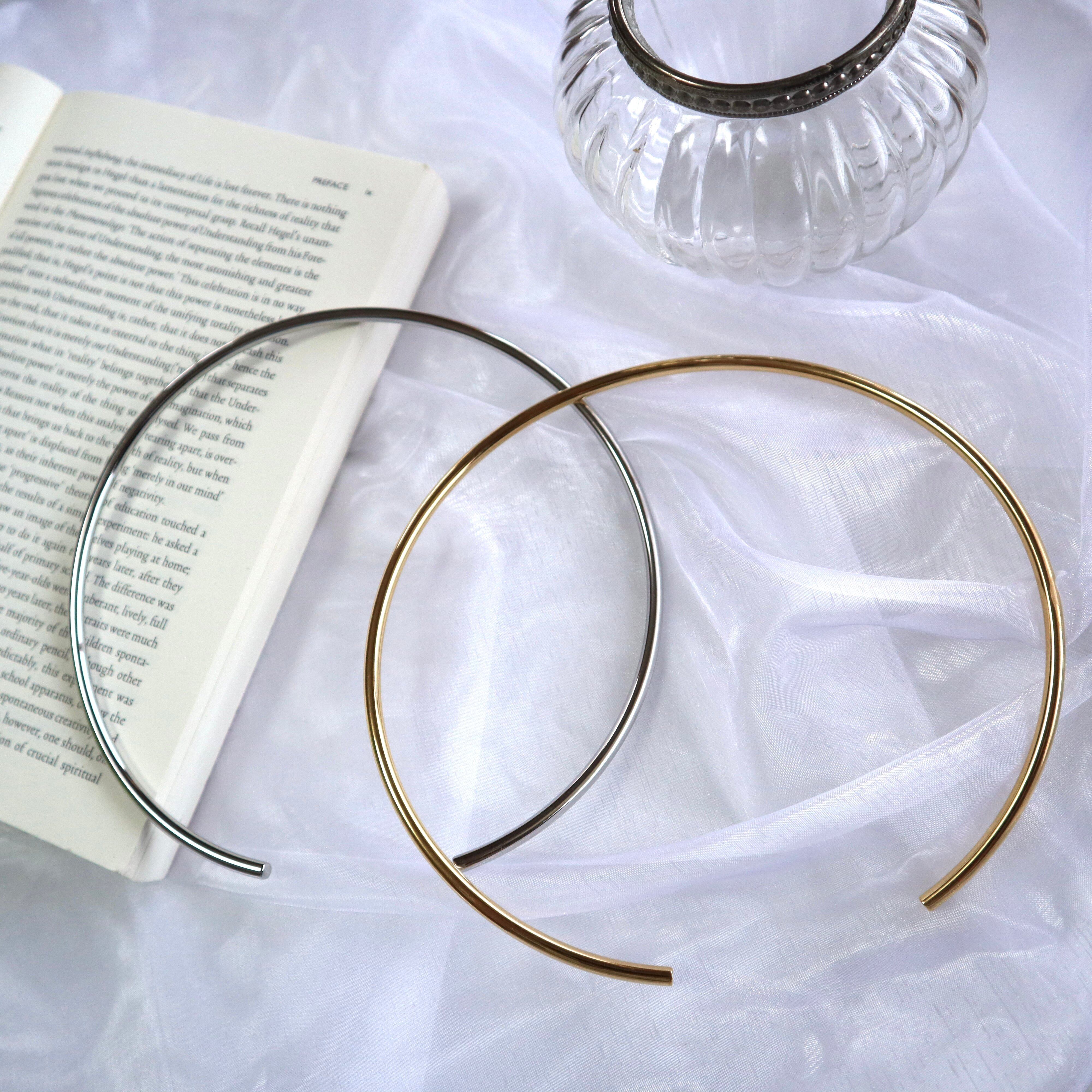 オールシーズン楽しめるステンレス製のシンプルなチョーカー。