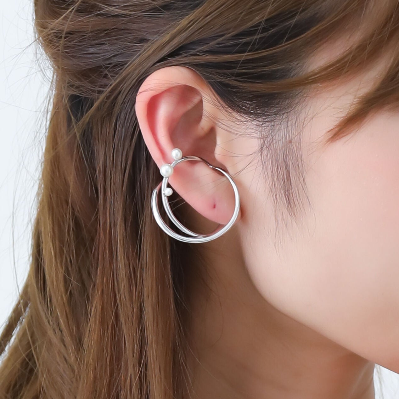 大ぶりなイヤーカフに大中小3粒のパールが乗った個性的なイヤーカフです。