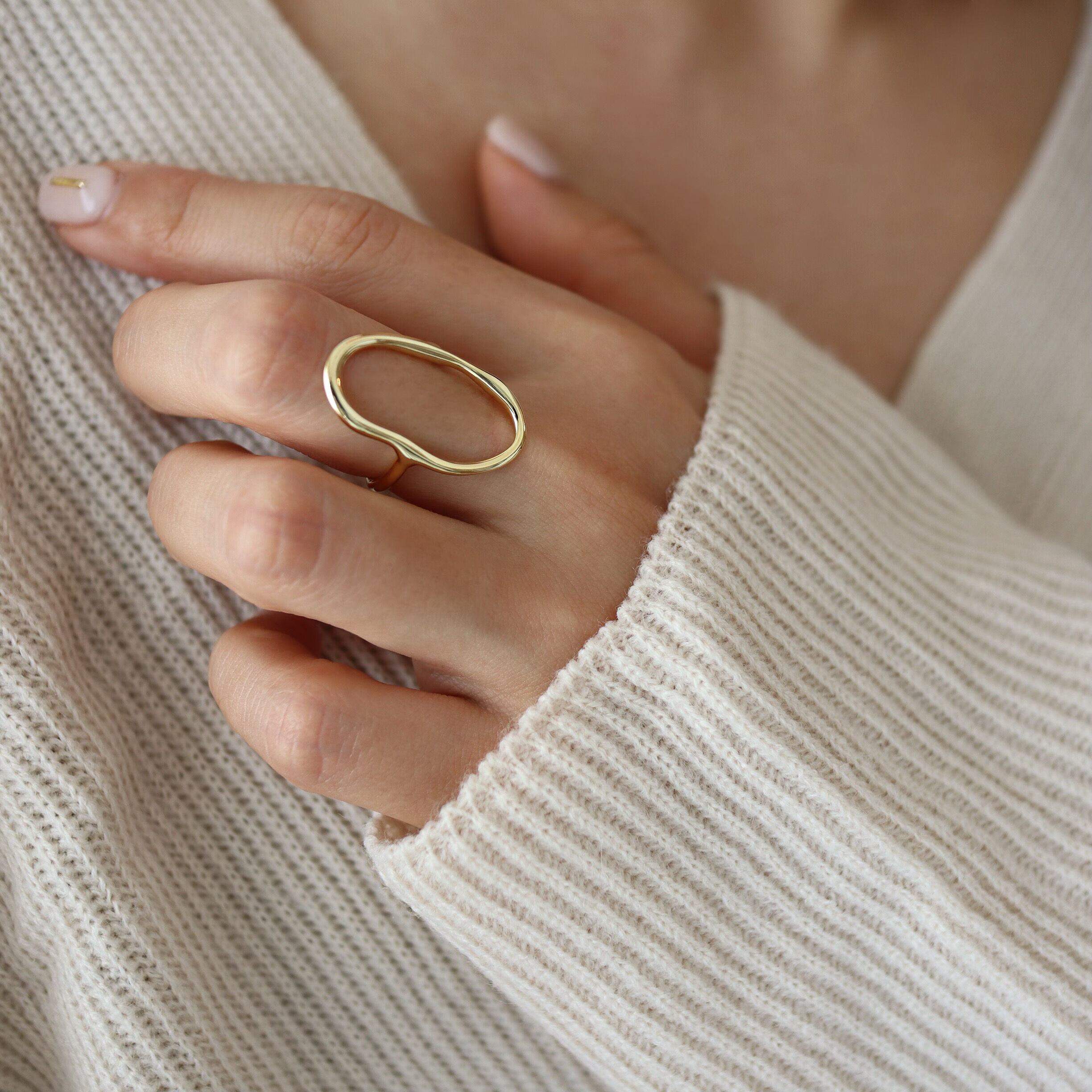細めの地金で女性らしい華奢な印象のオーバルリング。