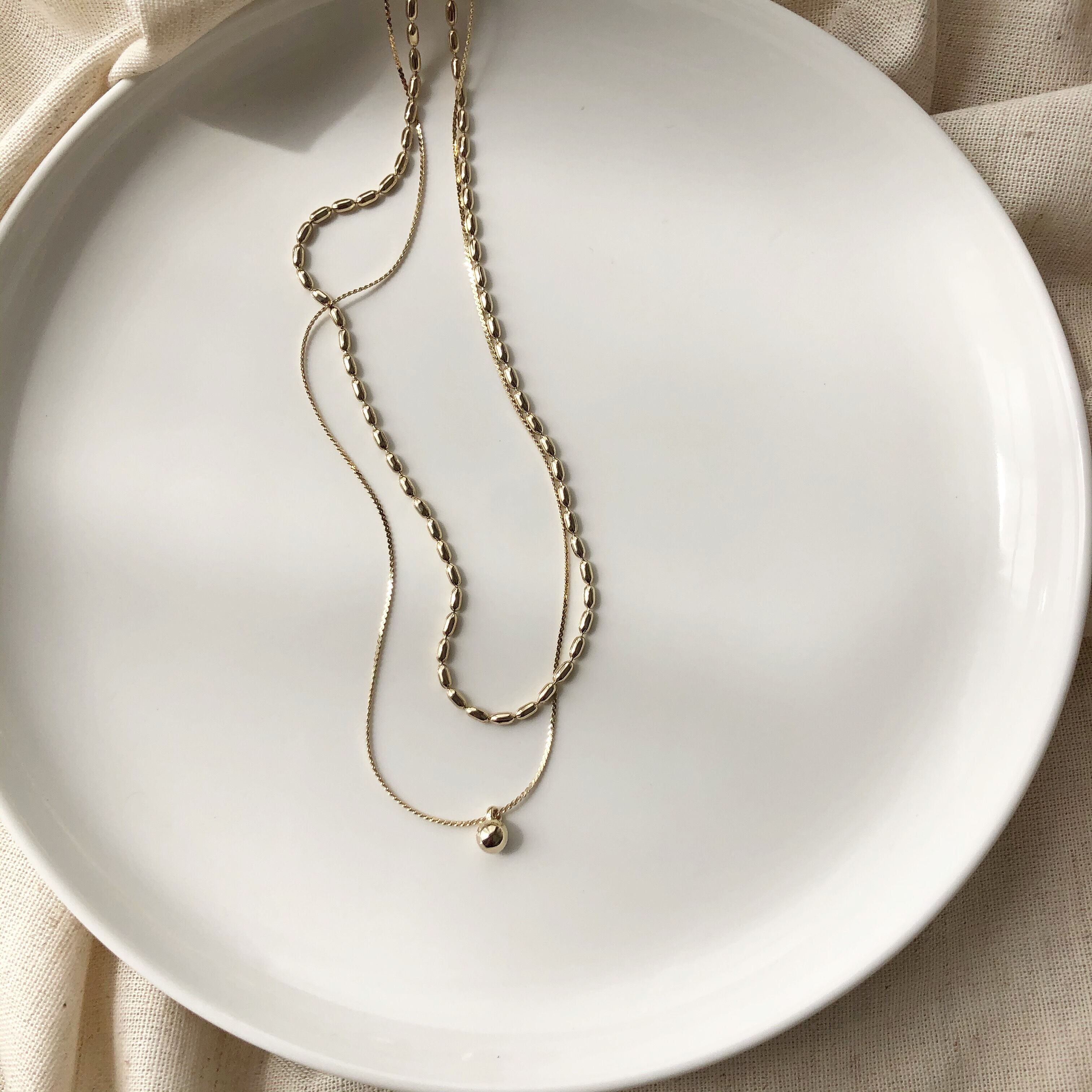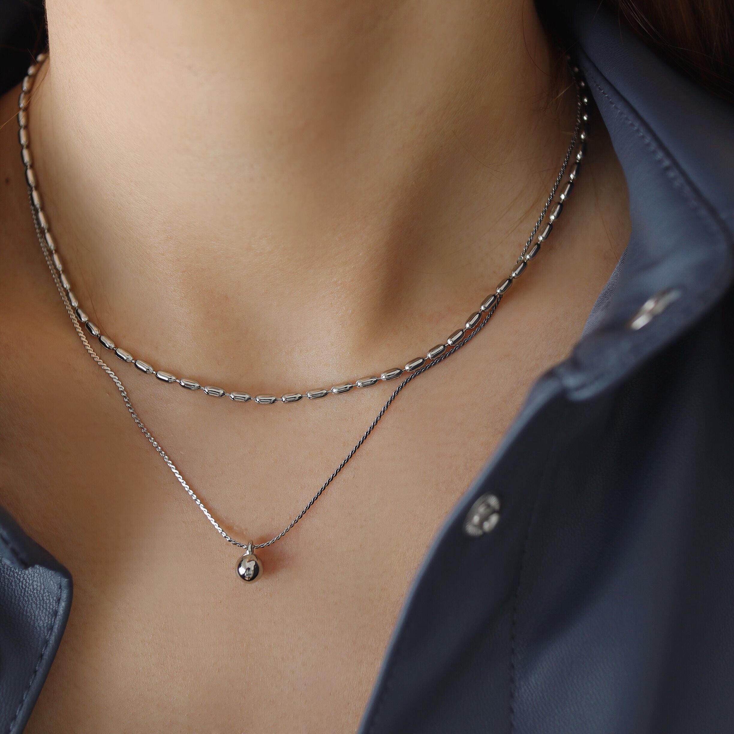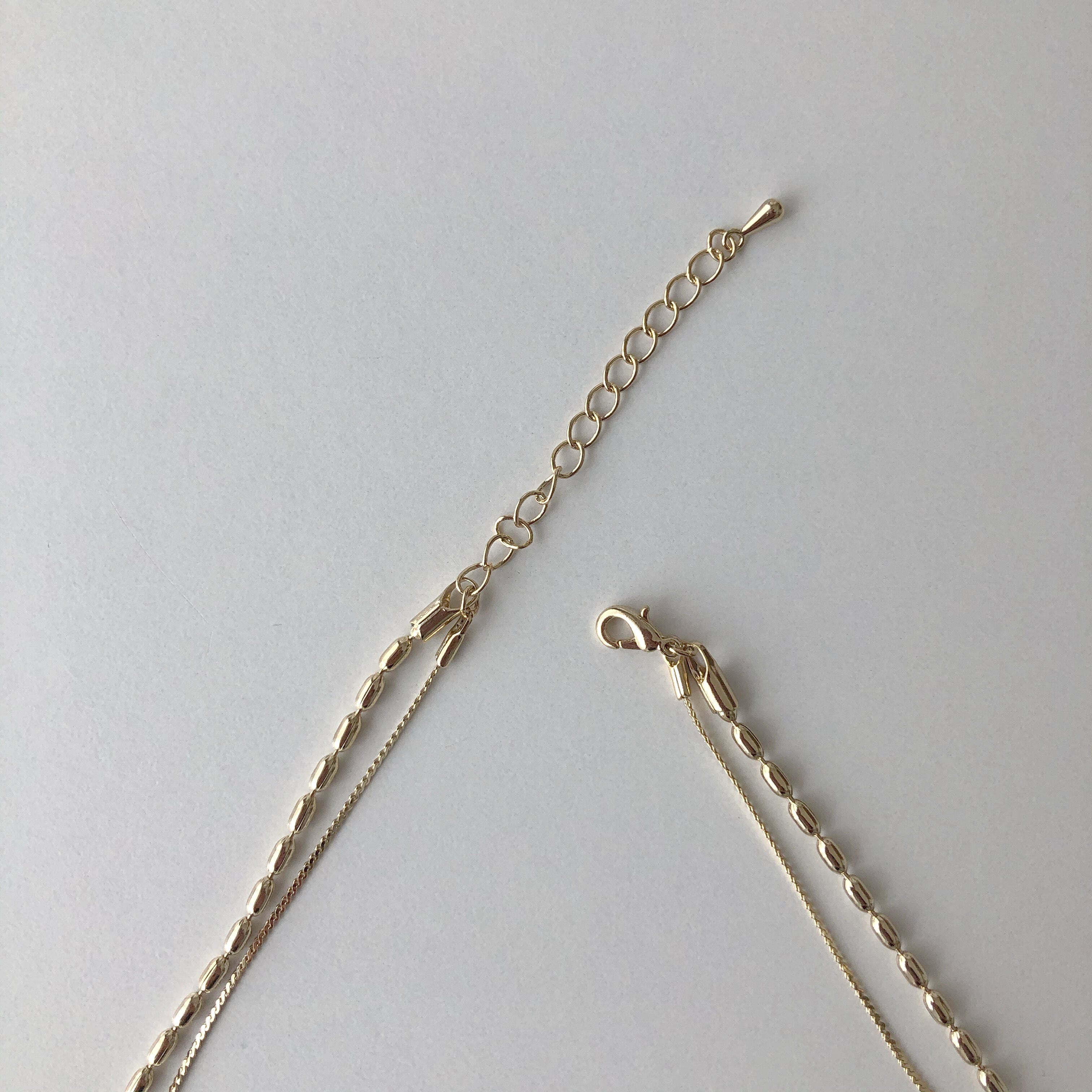 種類の異なる二種類のチェーンを使用した二連ネックレス。