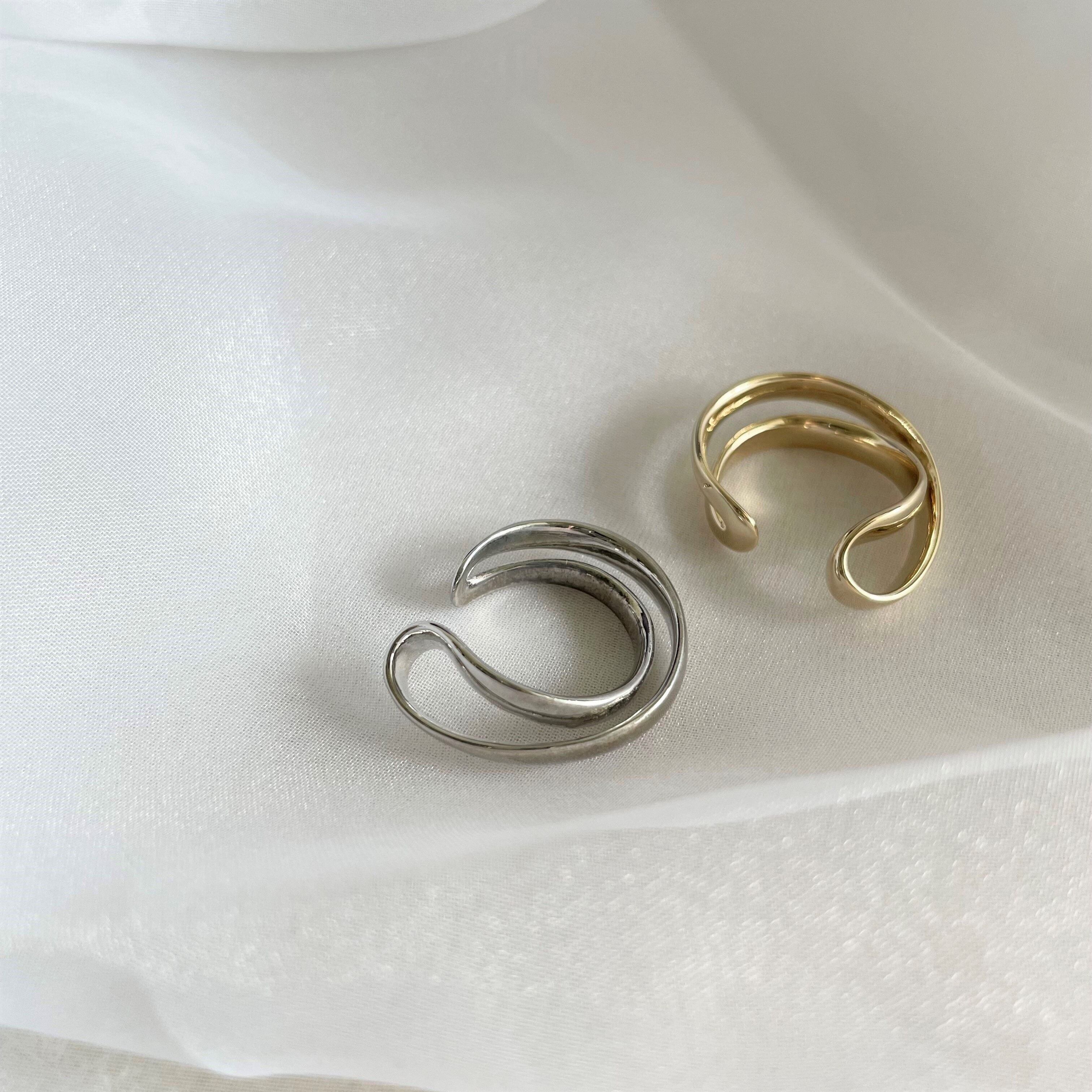 ひと癖あるデザインですが、シンプルな地金のリングなのでどんな方でも取り入れやすいアイテムです。