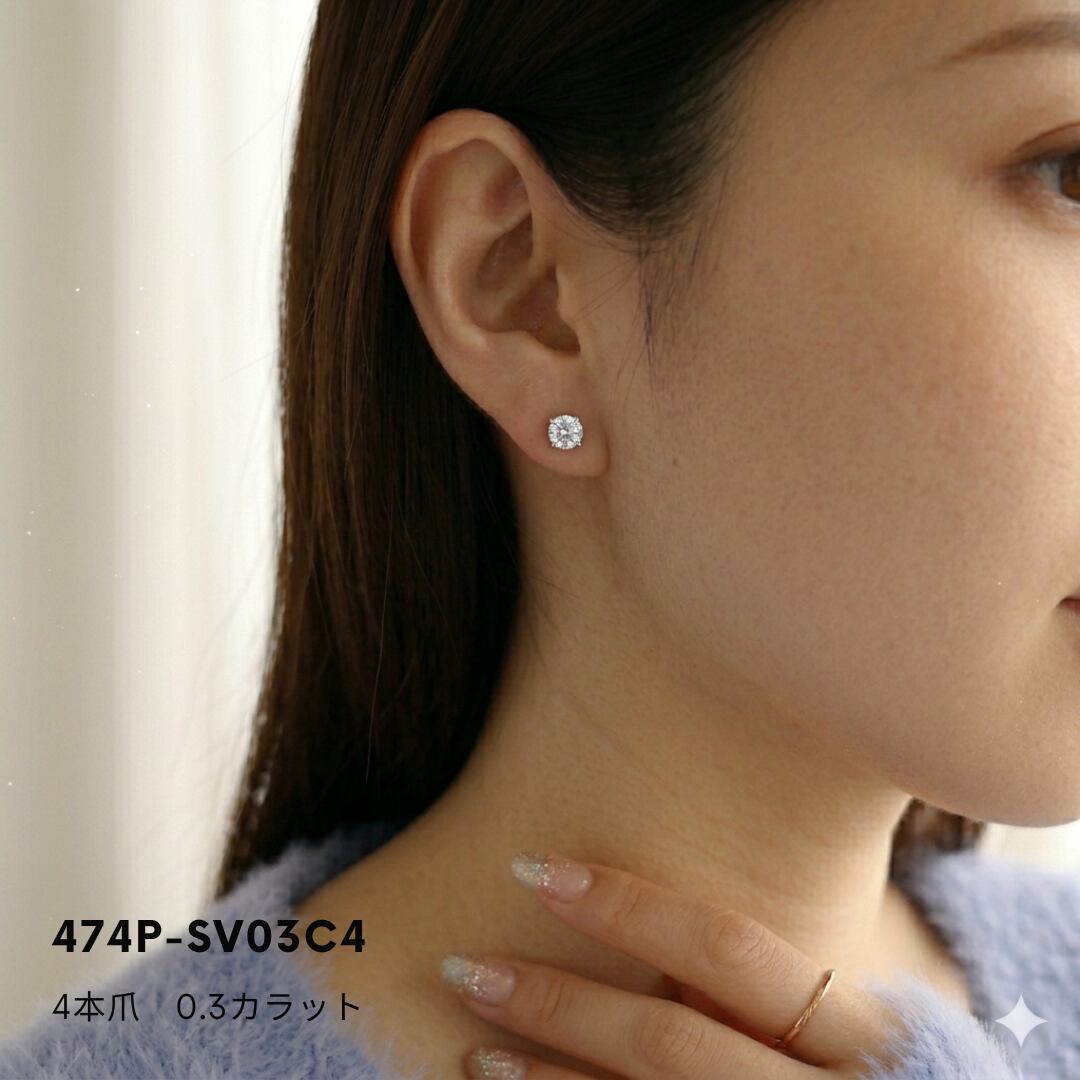 474P モアサナイト一粒ピアス(0.3カラット)
